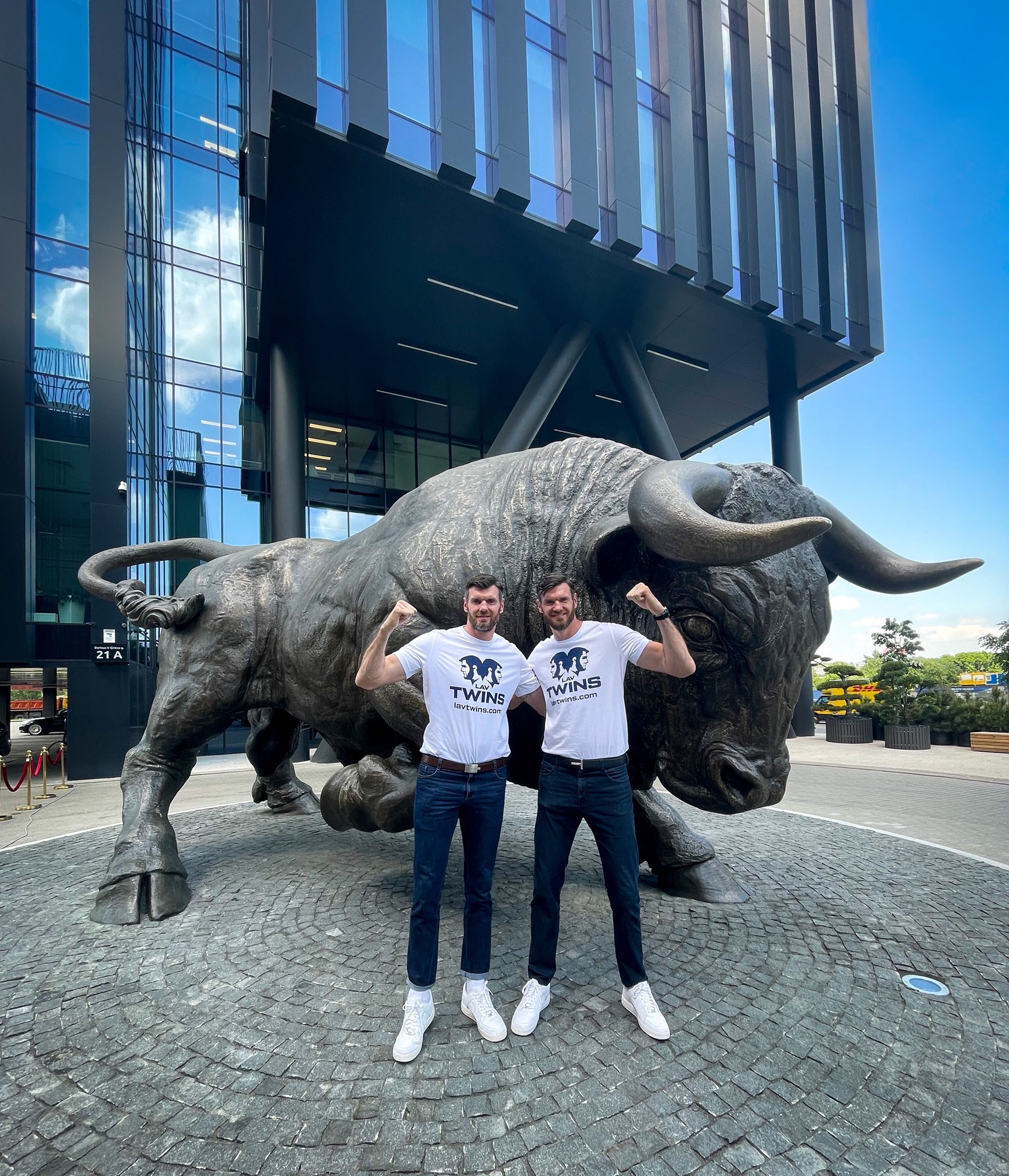 Bulls symbolize power, resilience and prosperity in other contexts besides sports too — big businesses, for example. That’s why LavTwins, together with Avia Solutions Group, a leading aerospace services group, celebrated a very special occasion — the opening of the Triumphant Bull in Aviator Square on Aero City Vilnius. Listen carefully everyone: it’s the biggest triumphant bronze bull in the entire world! Even the tallest twins in the world don’t look as tall next to this little monster — but hey, who would!